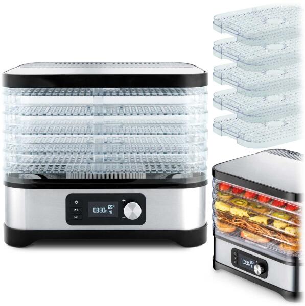 Berdsen Aszalógép, gyümölcs-zöldség szárító, 5 tálcás, 10l - Fekete, Ezüst